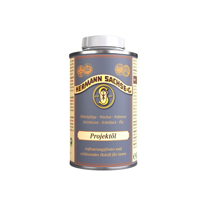 Bílý vápenný olej Projektöl na dřevěný nábytek neztmavuje dřevo a na povrchu vytváří světlý povrch v hedvábném lesku. Olej je vyroben v německé manufaktuře Hermann Sachse. Projektový olej je vhodný na masivní dřevo a dýhu v interiéru a to zejména na světlá dřeva jako je javor, buk, dub, jasan, smrk, borovice, světlé tropické dřevo. Olej má antistatický účinek, je odolný vůči mechanickému otěru a poskytuje zvláště účinnou ochranu před chemikáliemi v domácnosti jako je alkohol, kuchyňské oleje, voda a podobně.
