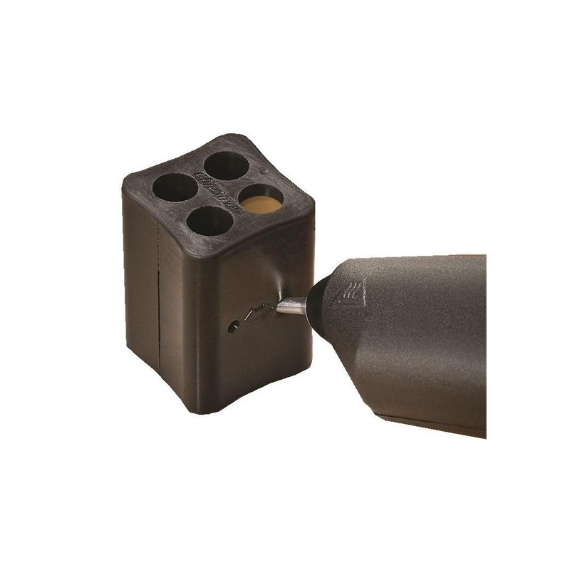 Spořič tmelu umožnuje výměnu jiného odstínu tyčinky tmelu Knottec bez ztrát. Zbytek tmelu se z pistole vytlačí do silikonového spořiče tmelu a po zatuhnutí se vytvoří opět tyčinky tmelu, které se dají opět vložit do tavné pistole a znovu použít.