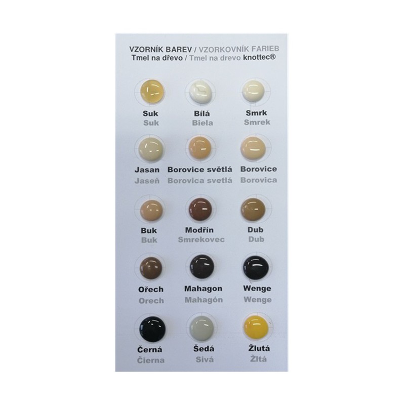 SUK - Pryskyřice - polotransparentní, (angl. AMBER), ŽLUTÁ - bednící desky Doka (angl. YELLOW), BOROVICE SVĚTLÁ - polotransparentní (angl. BEIGE), JASAN (angl. CREAM), SMRK (angl. IVORY), BÍLÁ (angl. WHITE), BUK (angl. BEECH), ŠEDÁ (angl. GREY), DUB (angl. OAK), OŘECH (angl. WALNUT), MODŘÍN (angl. LARCH), MAHAGON (angl. MAHOGANY), WENGE - Cola - polotransparentní (angl. COLA), ČERNÁ (angl. BLACK)