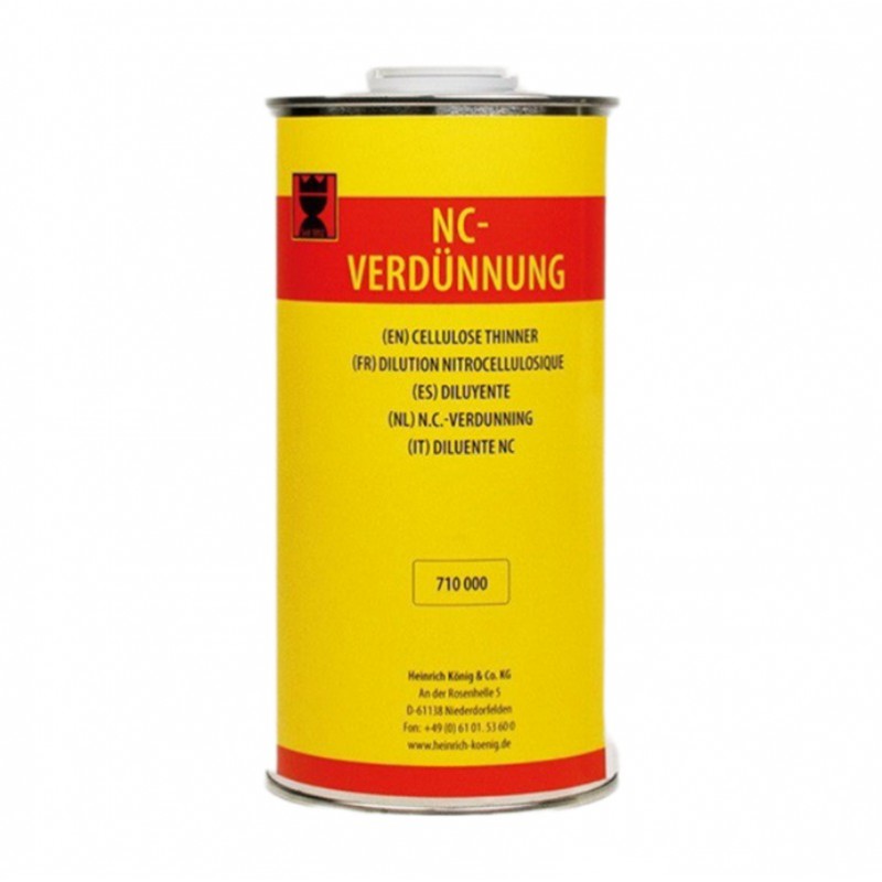 Pre riedenie všetkých nitro a akrylových lakov KÖNIG, pre riedenie opravné farby Fehler-Ex a na rozpustenie retušovacích farbičiek KÖNIG. Možno použiť ako čistič štetcov. Vyrobené na báze rozpúšťadiel.